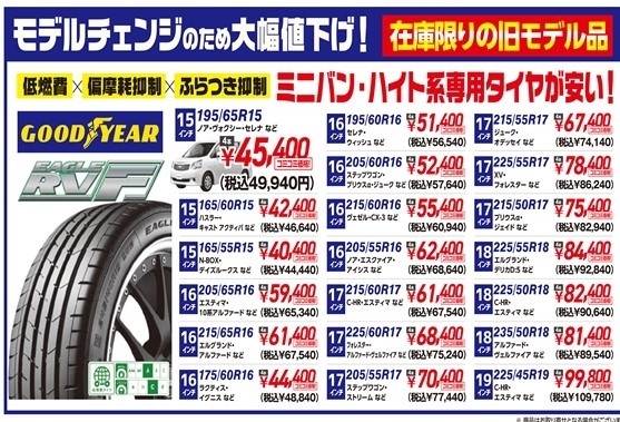 グッドイヤーのミニバン専用タイヤはタイヤ市場水戸笠原店が安い!!