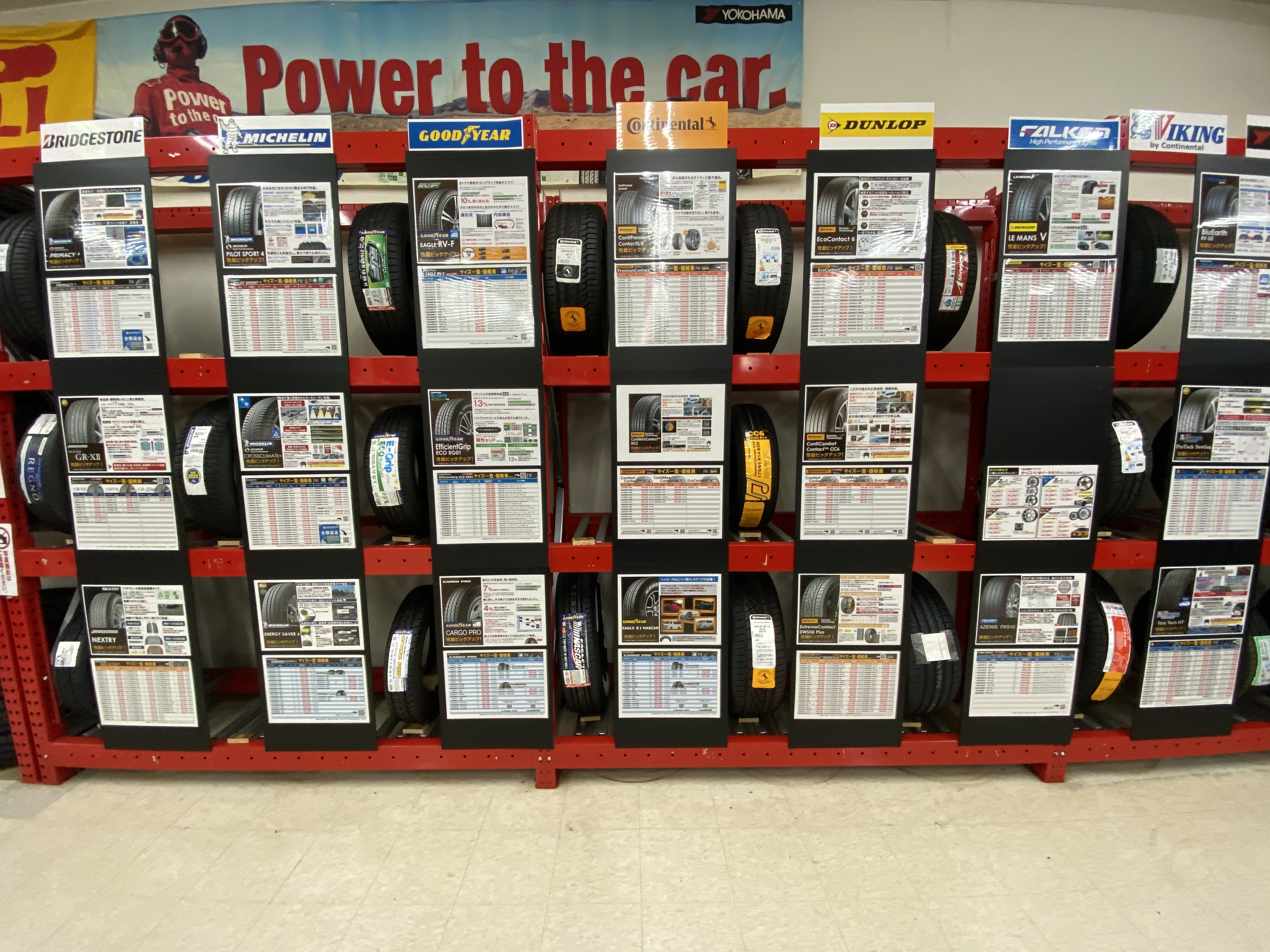 以前からもちょっとずつ売場の写真をアップしていますが、今回は各メーカーごとのタイヤ性能を分かり易く、見やすくなった売場が出来上がりましたのでご紹介させていただきます(=゚ω゚)ノ