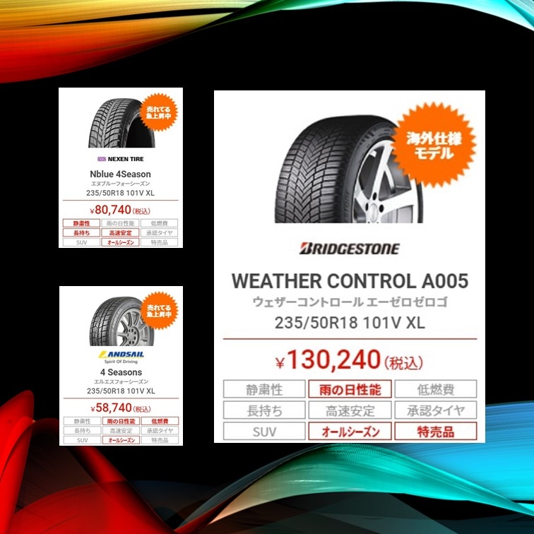 タイヤ市場おなじみのランドセイル 4Seasons をはじめ、