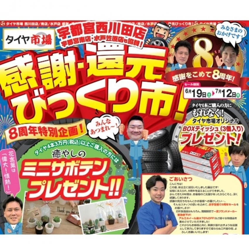 この度タイヤ市場 西川田店が8周年を迎えました㊗(∩´∀`)∩