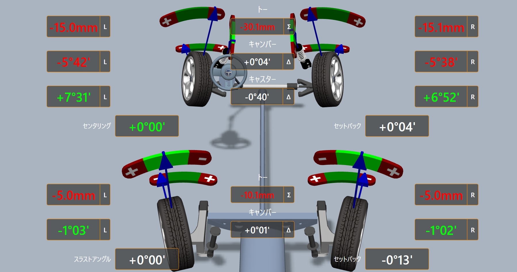 指定の数値での調整も承っていますのでサーキットユーザーさんも是非アライメントをご利用下さい!