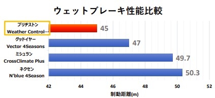 オールシーズンのどのタイヤよりも雨の日は早く止まるんです!!