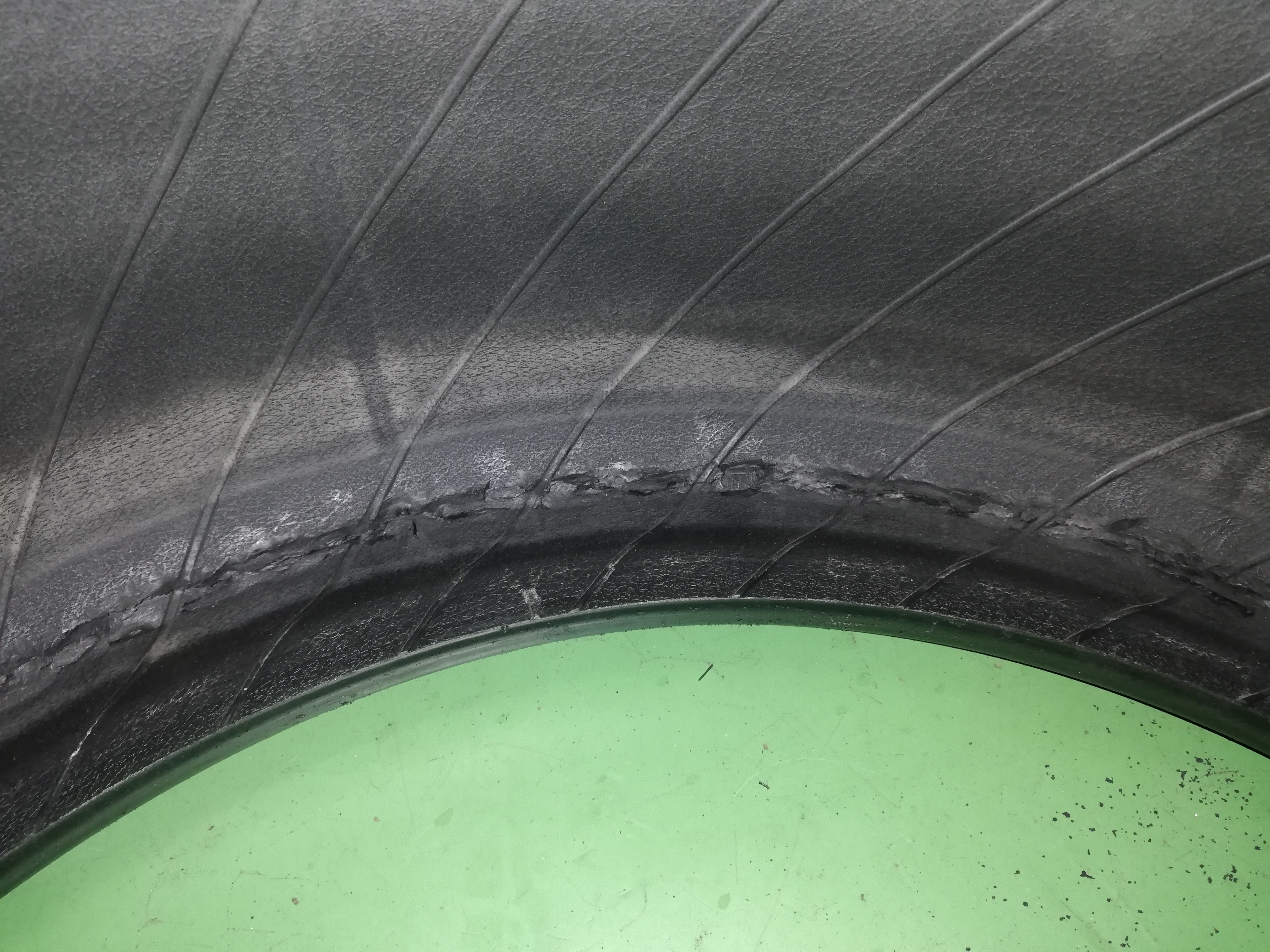 理由ですが、たとえば上の画像はエア圧0でご来店いただき交換したタイヤです。