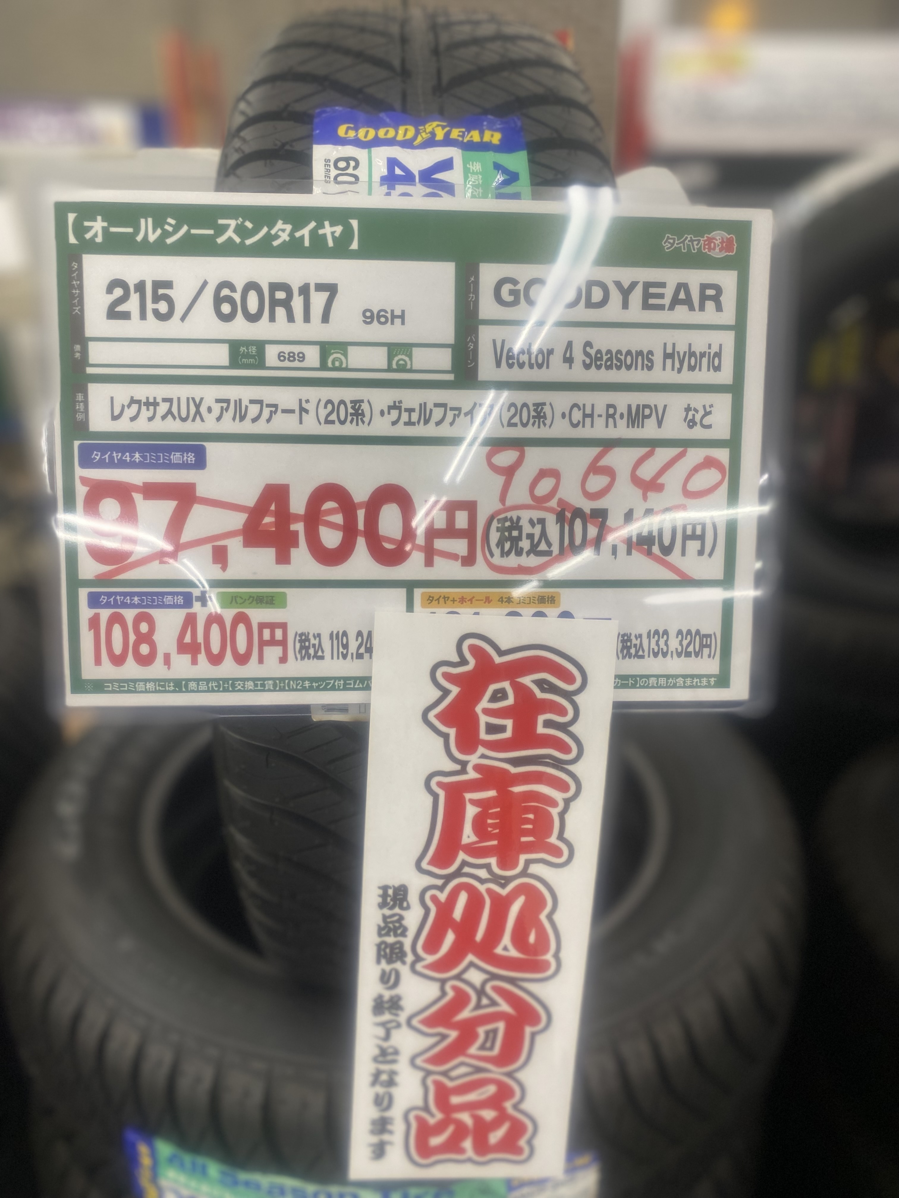7/23はグッドイヤー ベクター4Sの旧年製在庫処分第2弾実施します(=゚ω゚)ノ