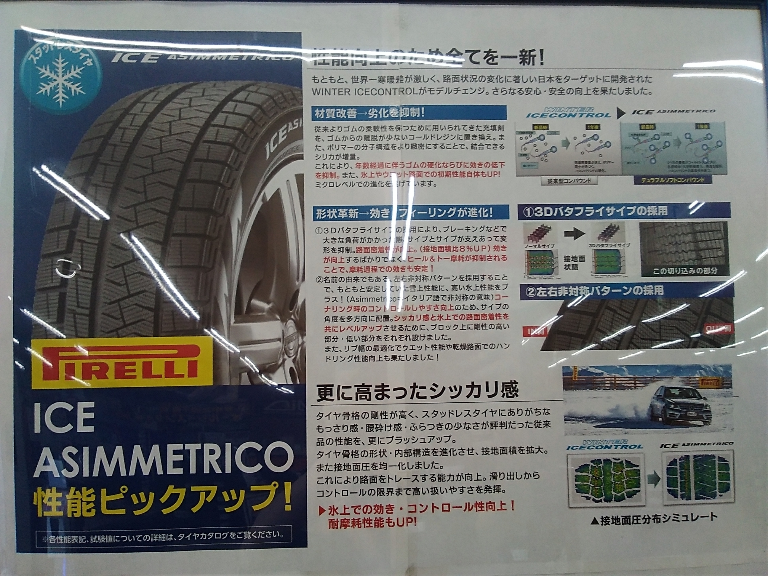 今回ご紹介するスタッドレスタイヤはPIRELLI アイスアシンメトリコです!!