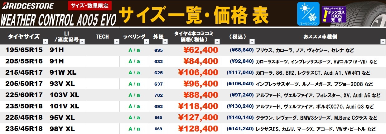ブリヂストン『Weather Control A005 EVO』に決めてみてはいかがでしょうか??