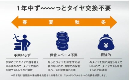 それはズバリ「1年中タイヤの履き替えがいらない」事です!!