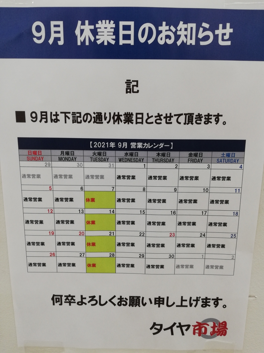 9/14(火)は店休日となります。