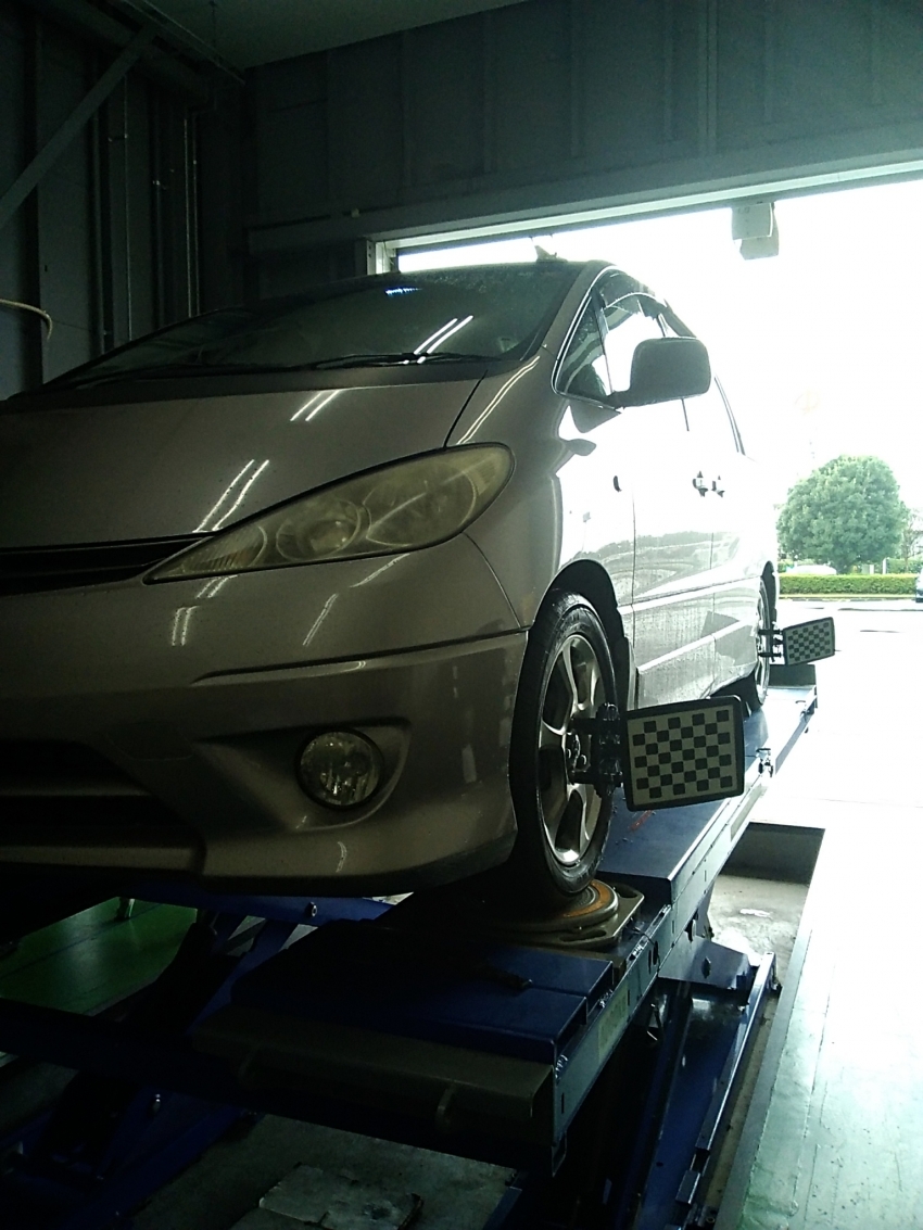 こんにちは!!本日はエスティマのアライメント、トー調整させていただきました(^^)/