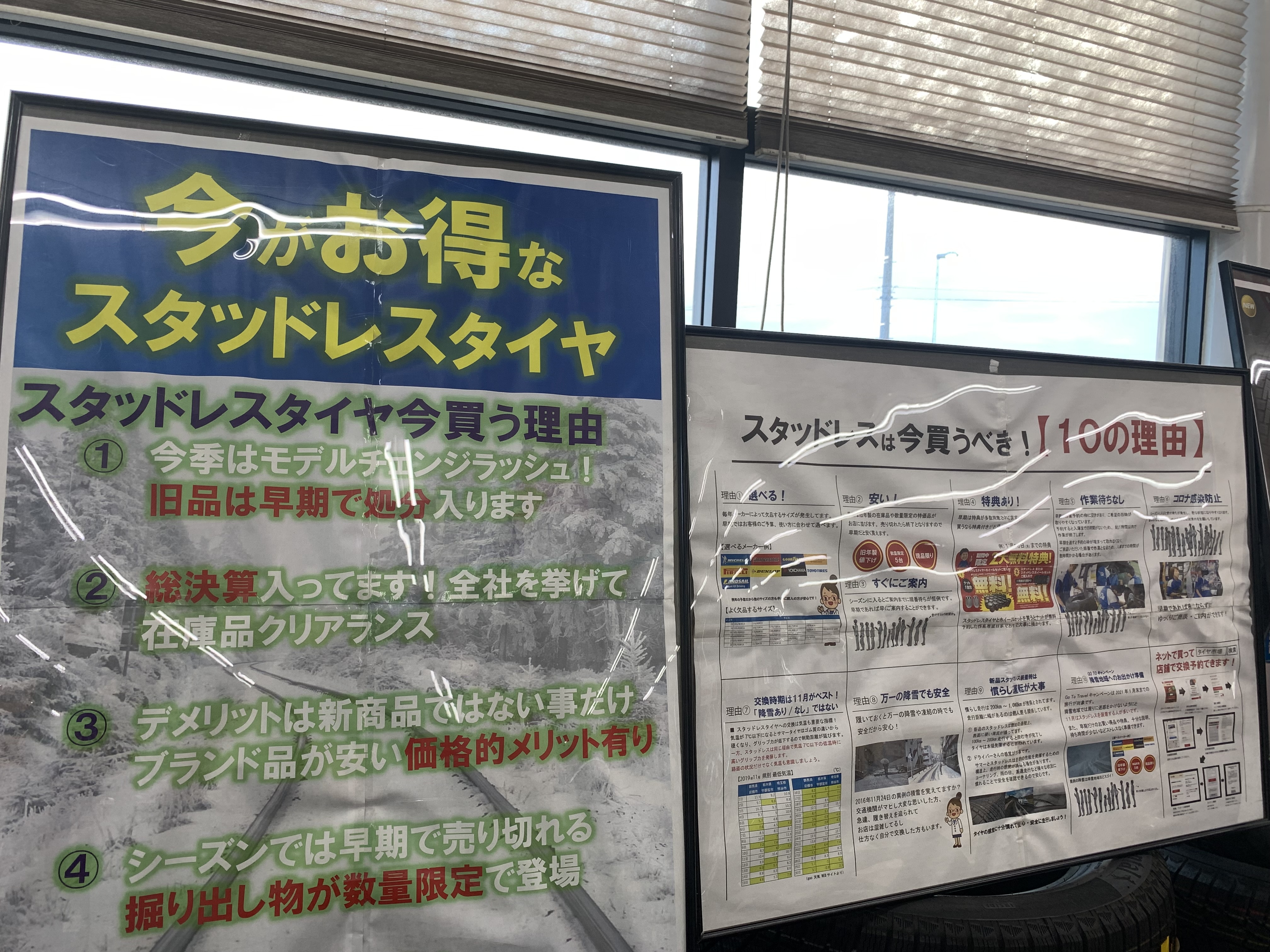 まさに今!スタッドレスタイヤもどんどんお店に入荷していますので、購入を考えてる方は是非ご来店ください!!!!!!