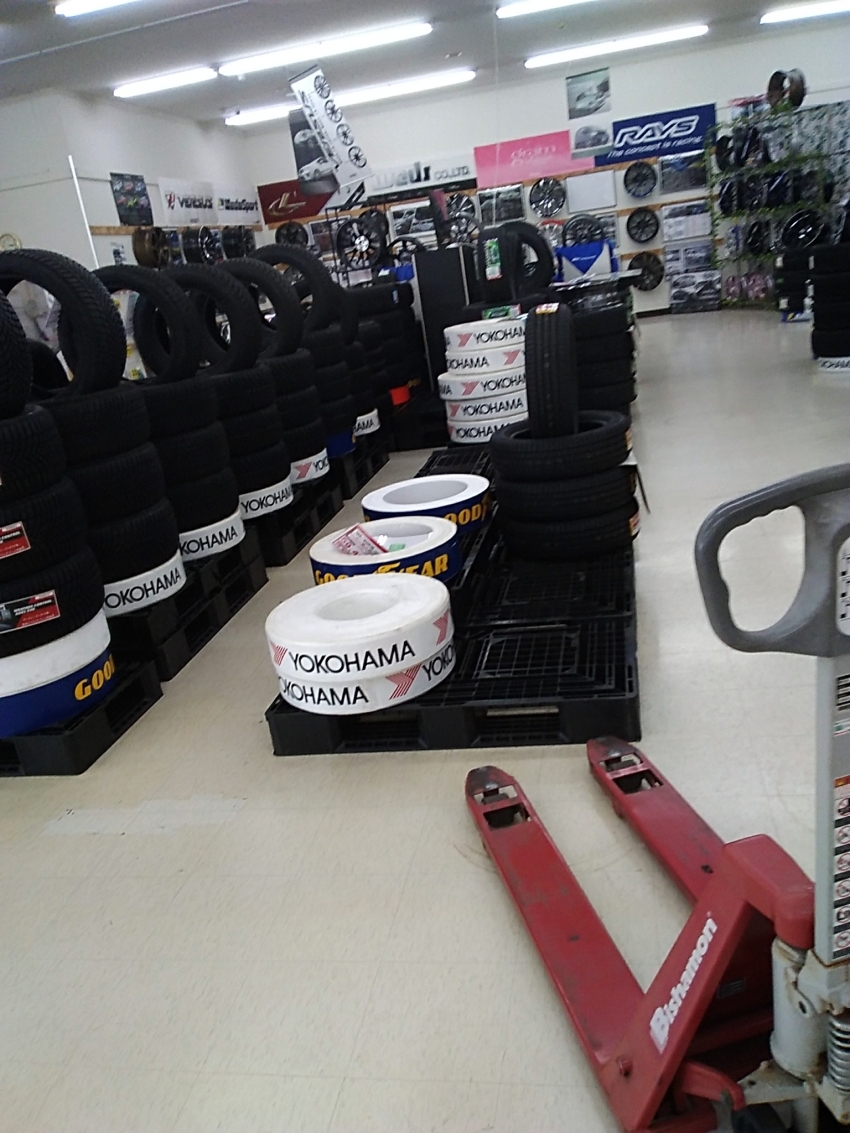 只今、タイヤ市場水戸笠原店では冬に向けてレイアウト変更をしています。