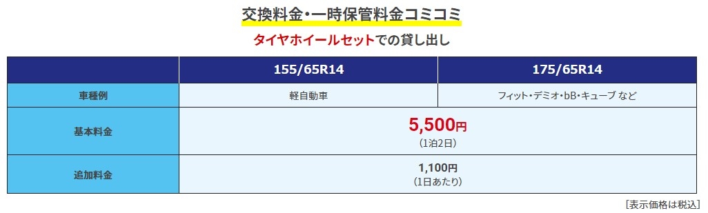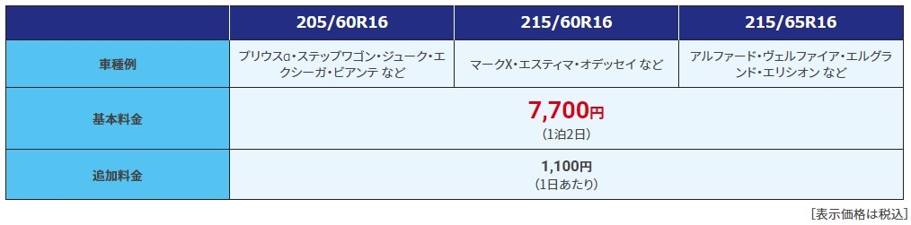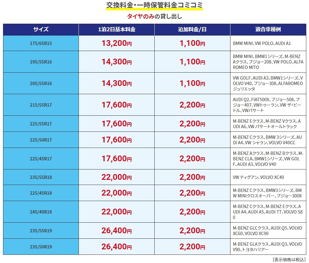 ※国産車はホイール付きでお貸出しになりますが、輸入車はタイヤのみのお貸出しになるのでお客様のホイールを使用する形となります。