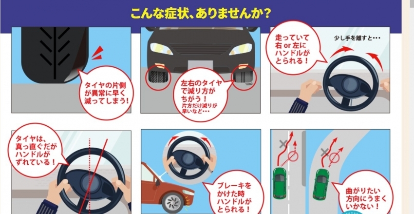 アライメントがズレているとこんな症状が出る場合も(;・∀・)