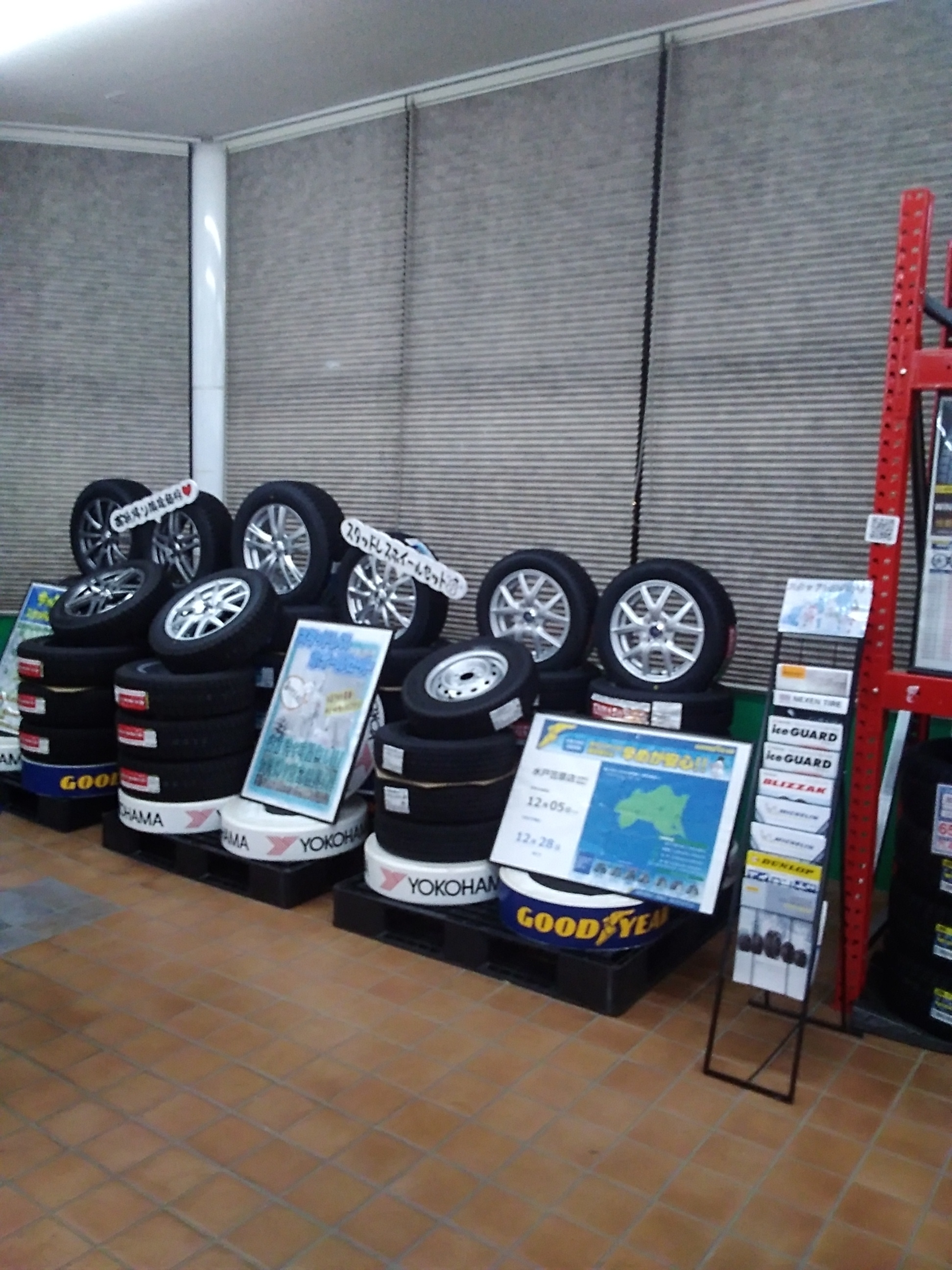 只今、タイヤ市場水戸笠原店では冬本番に向けてレイアウト変更を中です!!!