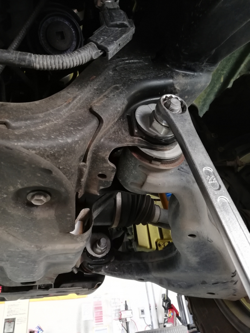 リフトアップを行うとキャンバーがポジティブ(逆ハの字)、キャスターも立っていきますので偏摩耗とセルフステアが弱くなってしまいます。