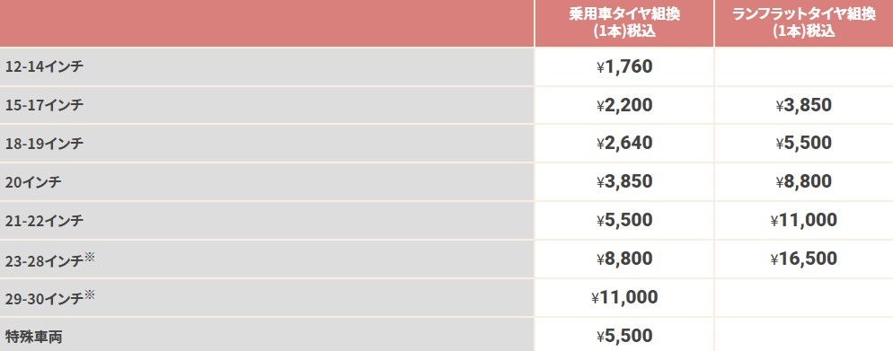 タイヤの組替え工賃表はコチラ!!!