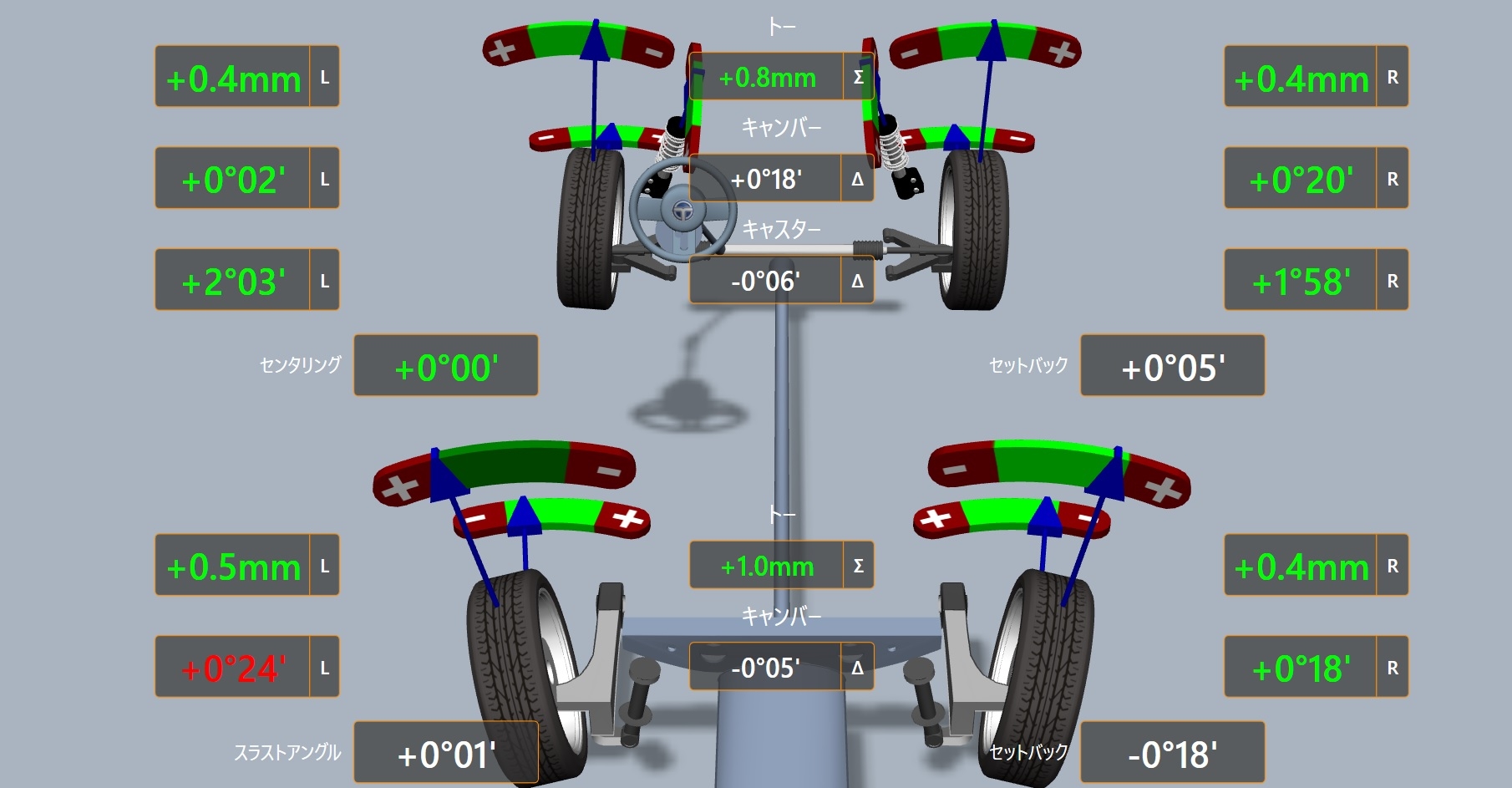 cv111.jpg少しポジティブキャンバー気味ですが左右差無く揃っているので問題ないと思います。