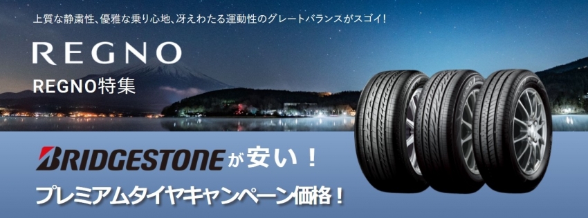 タイヤ市場ではブリヂストンのプレミアムタイヤであるレグノをお買い得でご用意してあります!