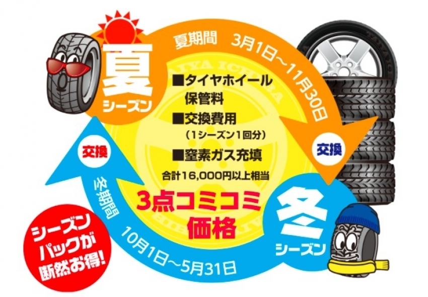 タイヤ、ホイール単品でのお預かりはお断りさせていただきます。