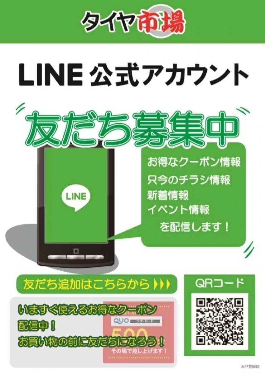 タイヤ市場水戸笠原店LINEお友達募集中!!