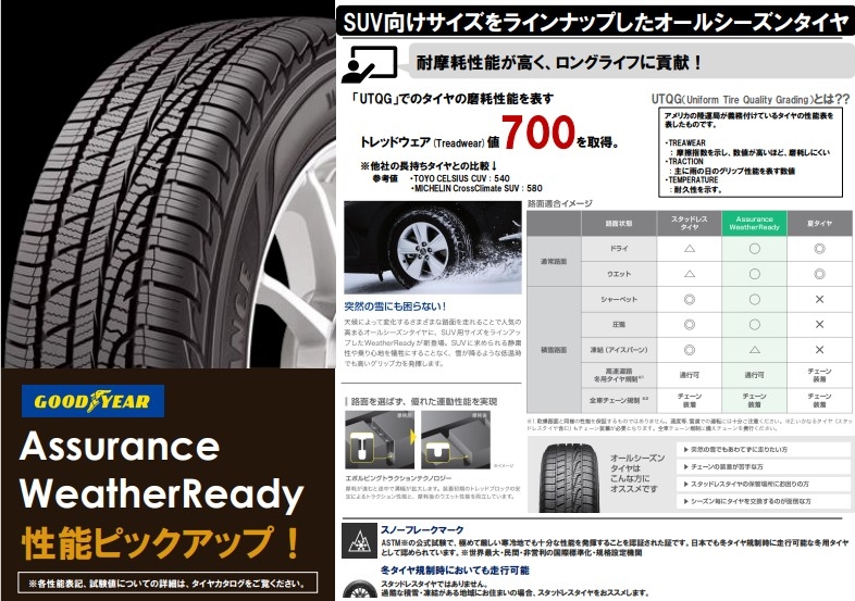 オススメラインナップの中でも特にグッドイヤーは旧年在庫大処分特価で大変お買い得!初めてオールシーズンタイヤをお選びいただく方にはお客様の使用用途や求めたい性能に沿ったご提案をさせて頂きますので是非お問い合わせ、ご質問ください!!