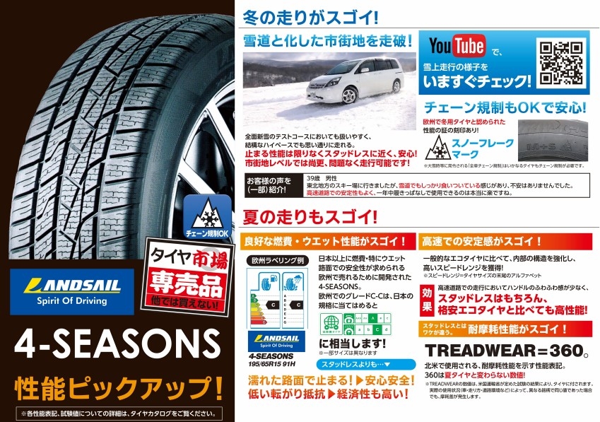 最近タイヤ交換のタイミングでオールシーズンタイヤをお選びいただく方が増えています(=゚ω゚)ノ