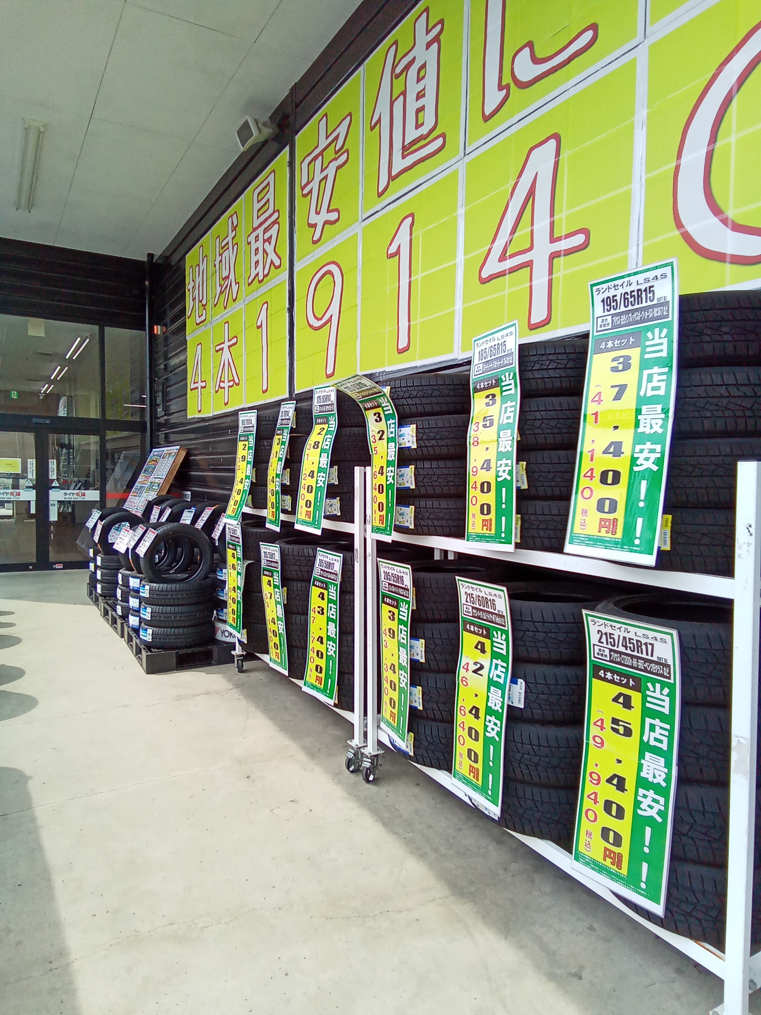 お店の前にもサイズごとにタイヤが並べられておりどのタイヤがどんな値段がするのか一目で分かります!
