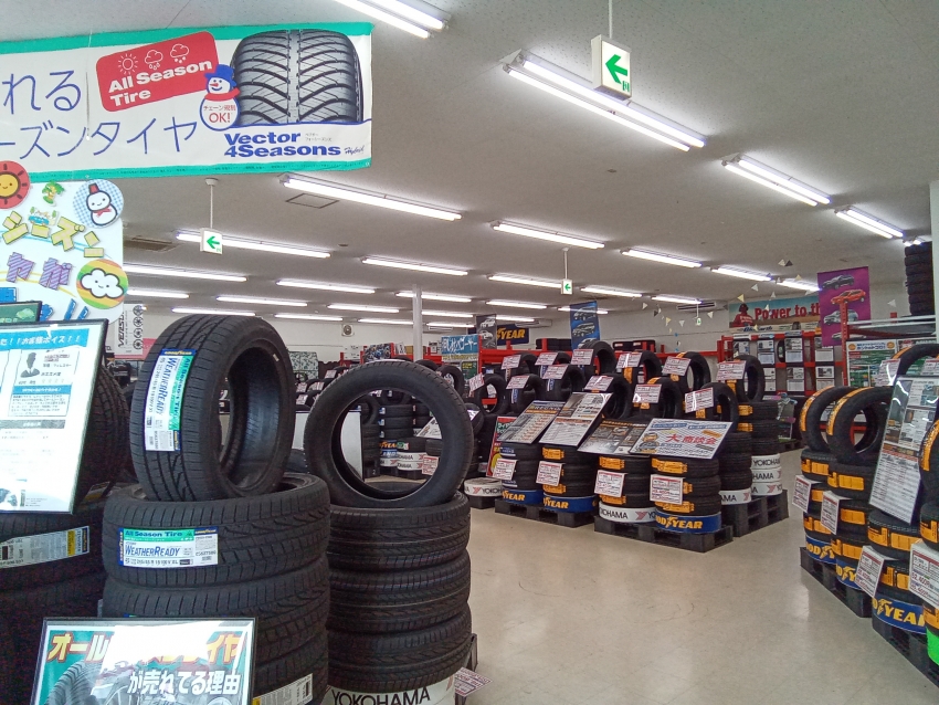 まずは入り口を入ったらすぐ今人気のオールシーズンタイヤが並べてあります(^^♪