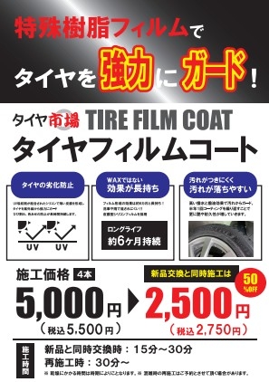 タイヤ市場おススメの新メニュー!その名もタイヤフィルムコート!!