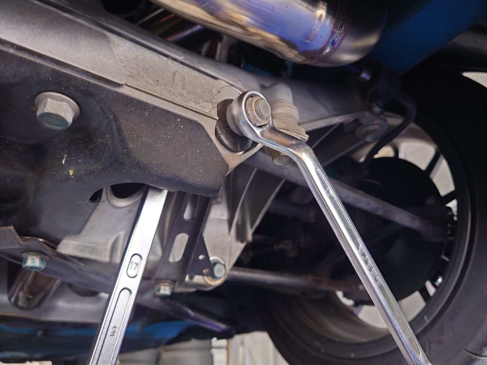 S660は軽自動車としては調整箇所が多くフロントキャンバー、トー、リアトーの計6カ所が調整可能です。