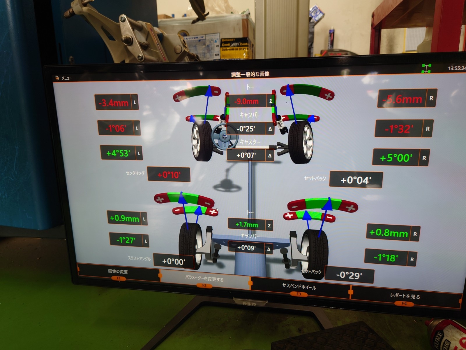 キャンバーが動く車はトーが影響を受けやすいのでズレが多きいですね。