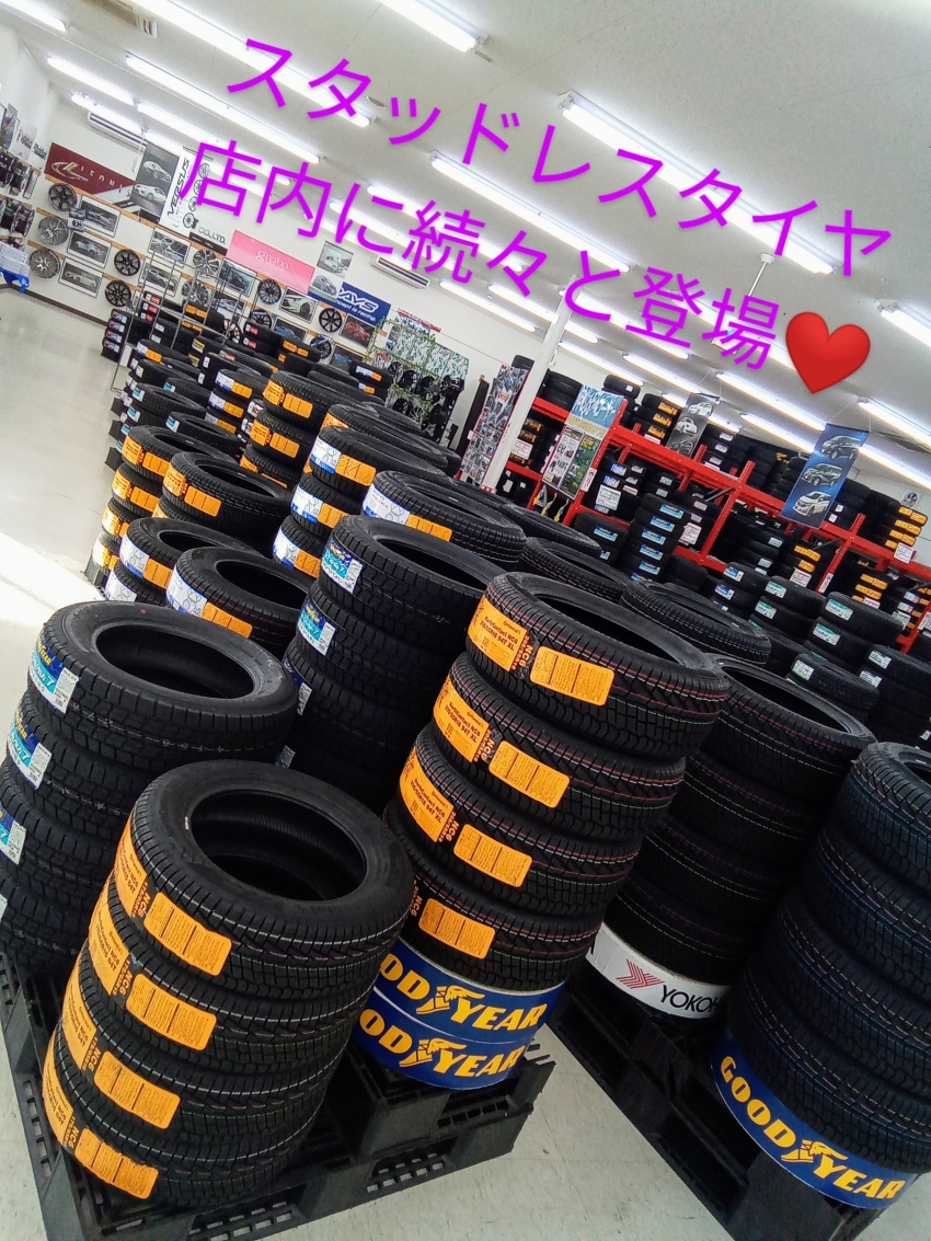 売り場スペースに 各メーカーのスタッドレスタイヤが