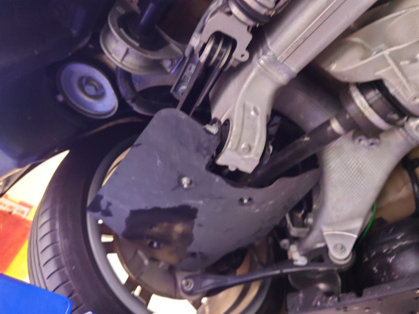 7シリーズはロアアームにカバーが付いていますので外さないと調整カムに工具が入りませんでした。