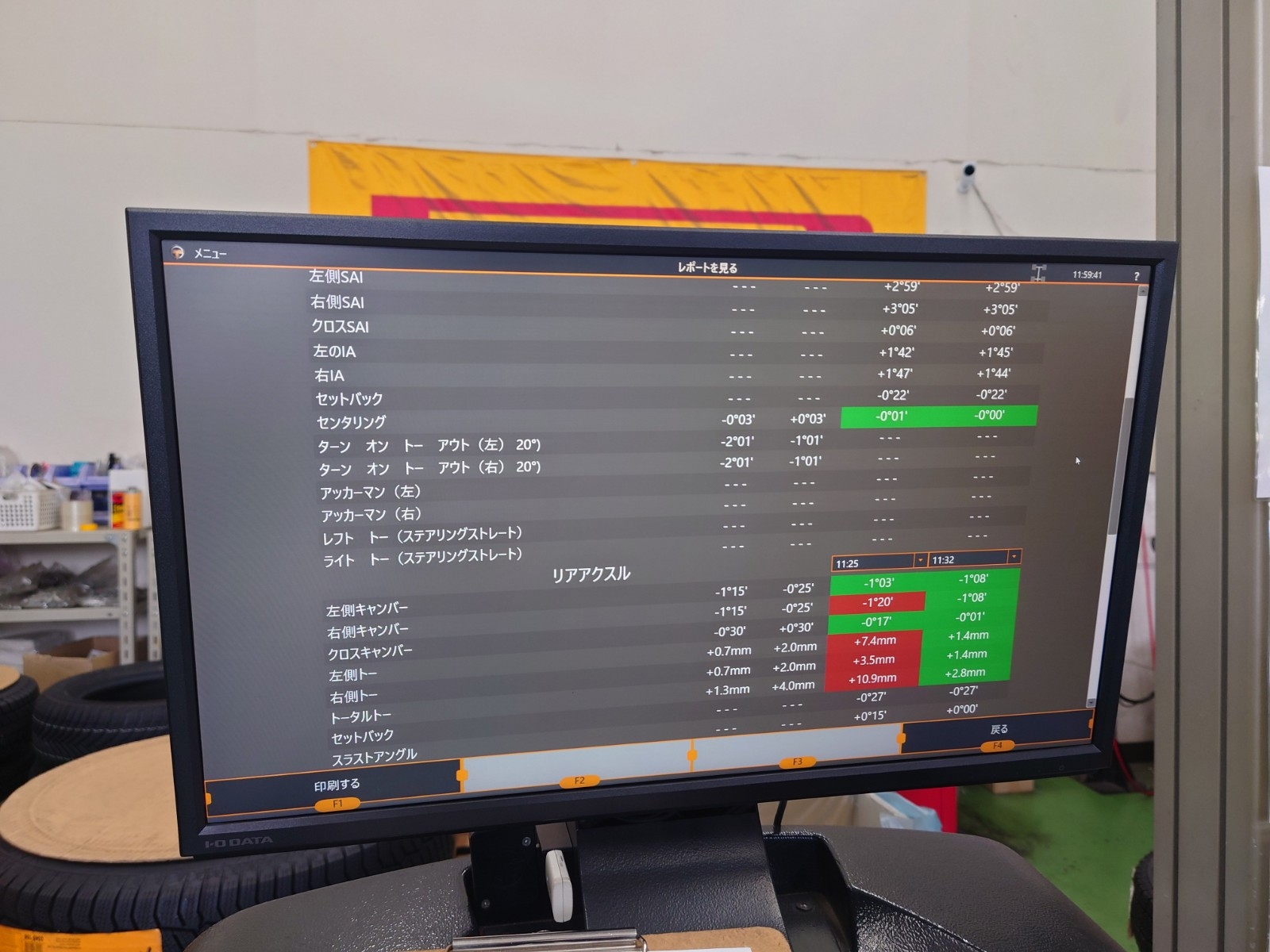 調整箇所はフロントトー、リアトー、キャンバーの計6カ所です。