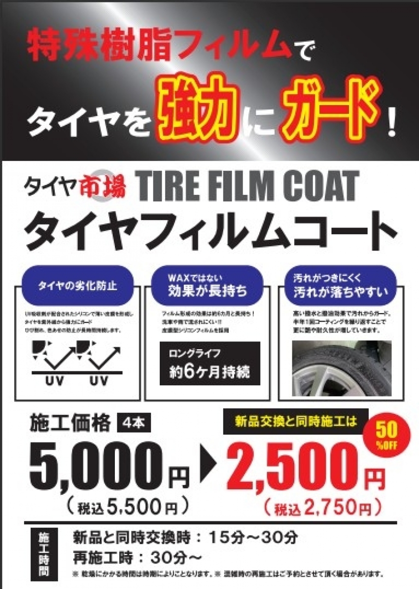 更に今だとタイヤフィルムコートの施工者限定でメンテナンスメニューもご用意しております!!