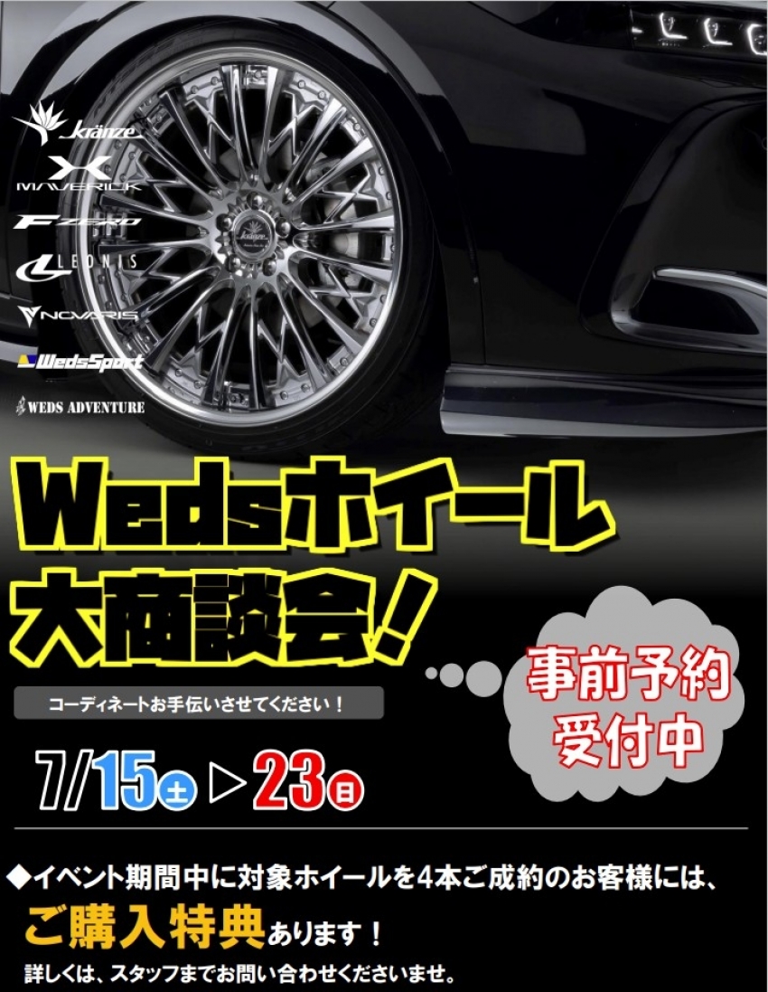 【タイヤ市場】 水戸笠原店 Wedsホイール大商談会!!7/15(土)~23(日)開催!!愛車のドレスアップ、コーディネートお手伝いします♡