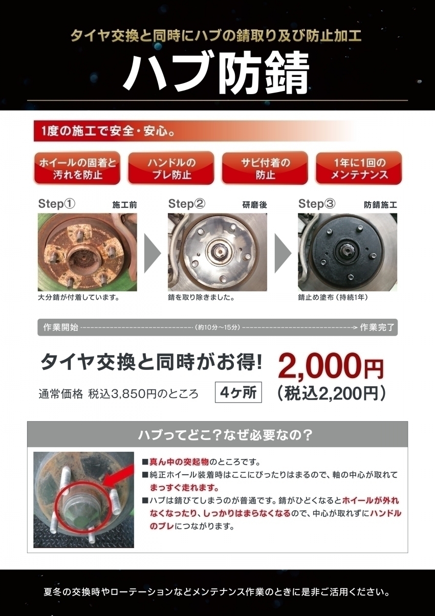 ハブ防錆 (税込) 2200円となっております!!
