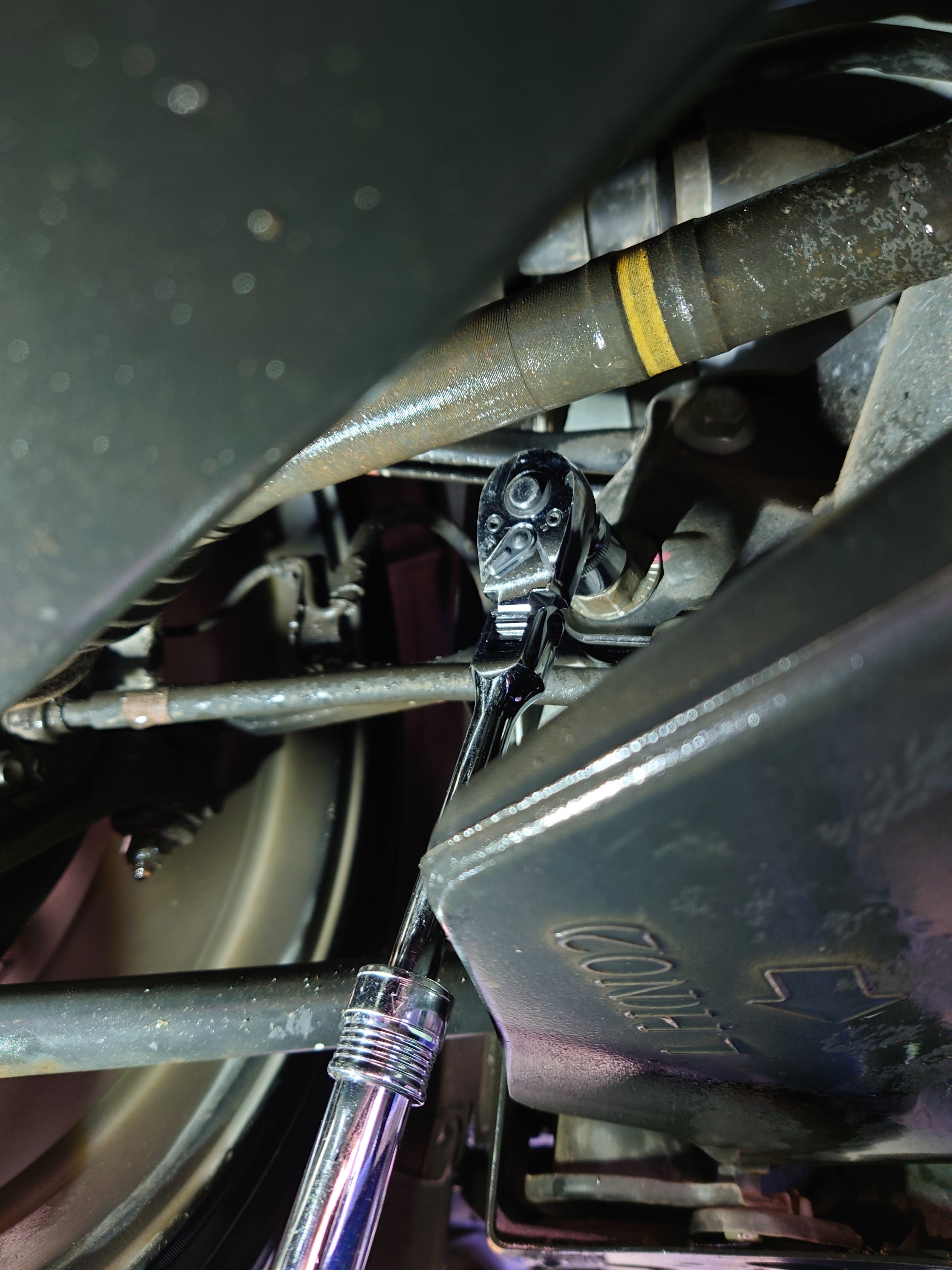 主な原因は後ろの左右差だったので狭いスペースに工具を入れながら調整していきます。
