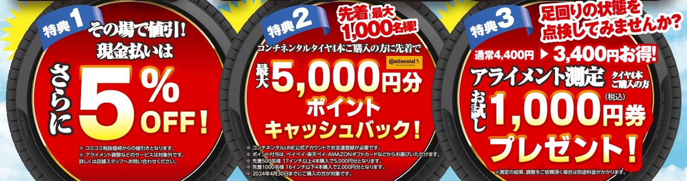 現金値引きや特定のタイヤをご購入頂くとポイントが貰えます!