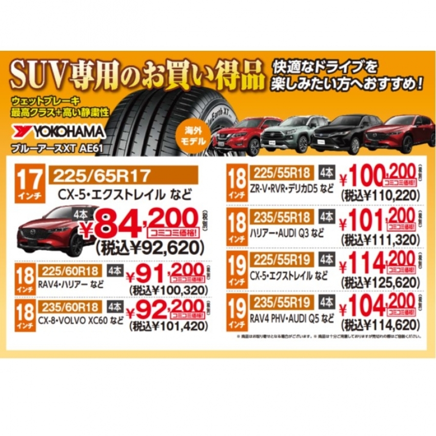 履き替えがまだのSUVを乗っている方必見です!!