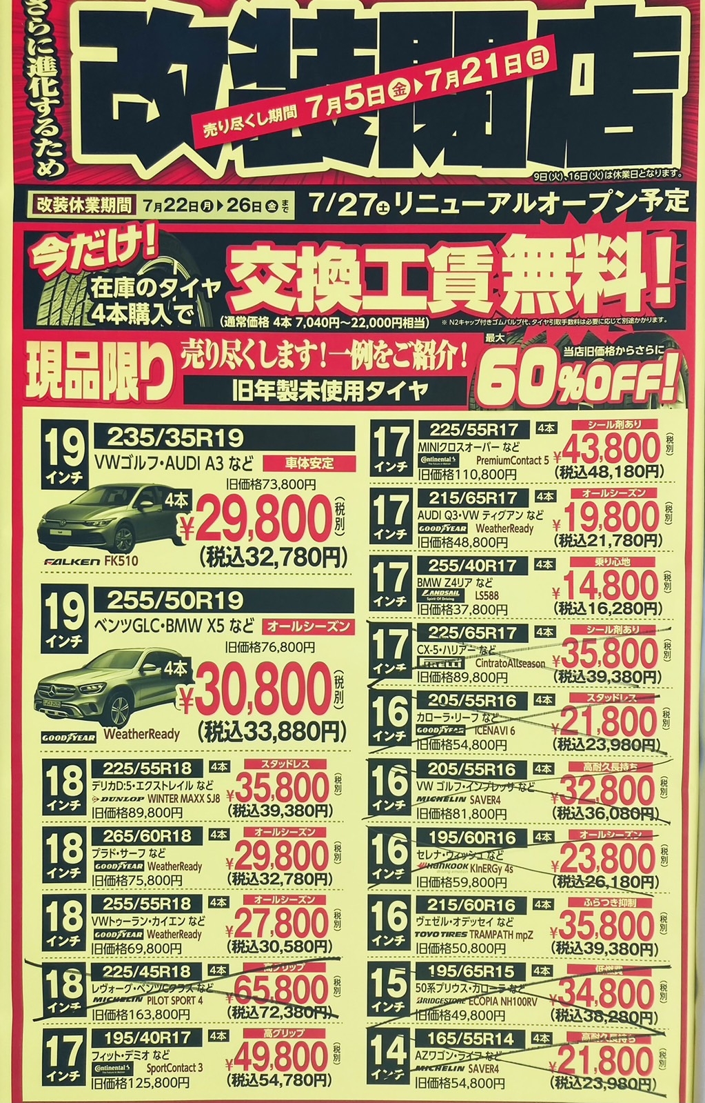 タイヤ市場水戸笠原店の改装閉店セール!!!