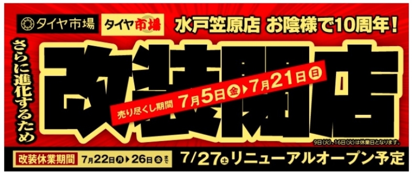 当店は改装の為7/22~7/26まで店休日とさせていただきますが