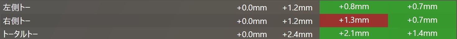 そして今回は基準値の+0.7mmに調整させていただきました。