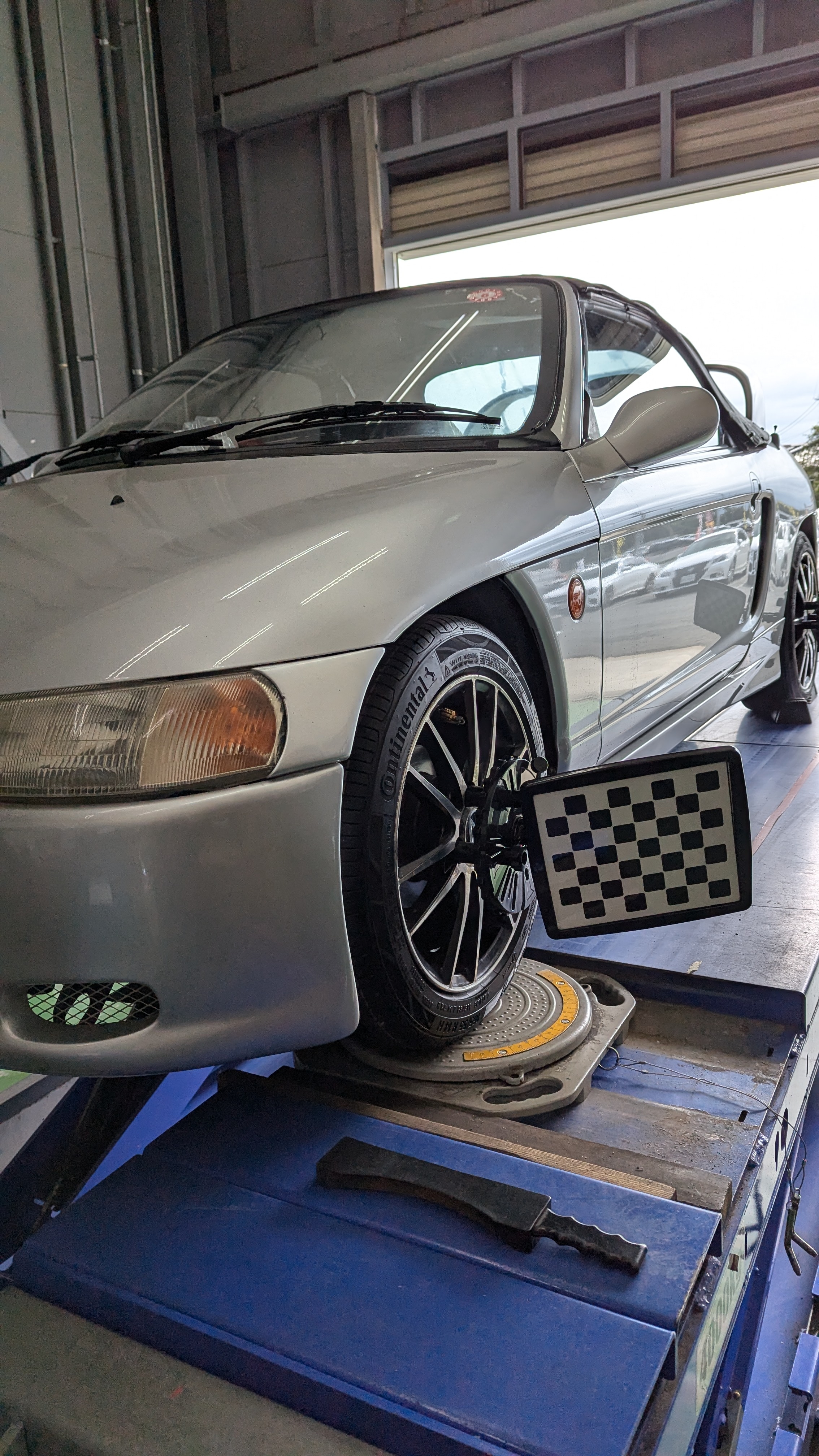 足回りの部品を交換したり社外パーツに交換した際はアライメント調整をオススメです。(^^)/
