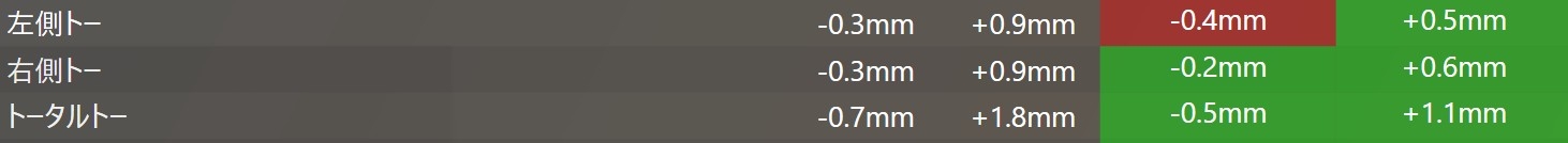 数値のズレとしては左右共にトーアウト(がに股)になっていました。