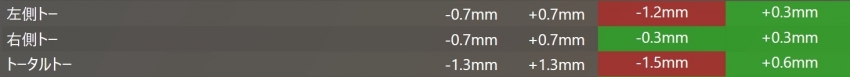 数値のズレとしては左側のトーがアウト側にズレていました。