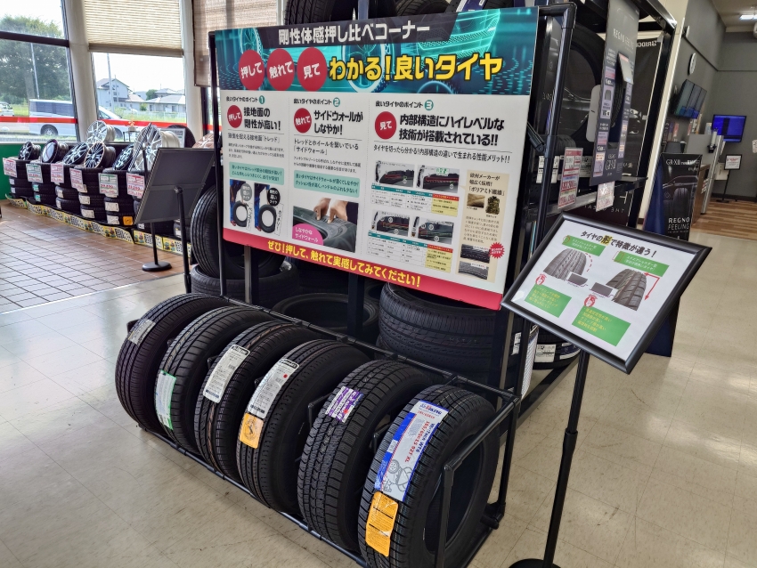 各メーカーのタイヤ剛性を体感できる押し比べコーナーにスタッドレスタイヤを追加しました。