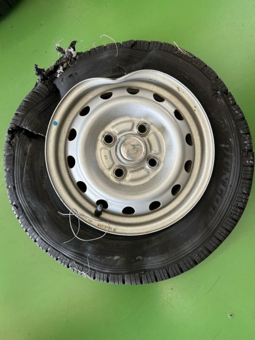 ホイールごとぶつけてしまい、パンクしてしまったそうです。