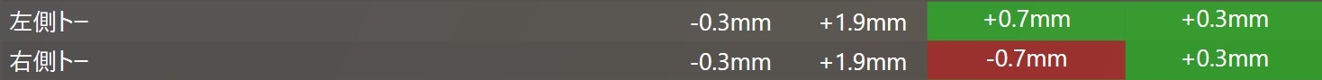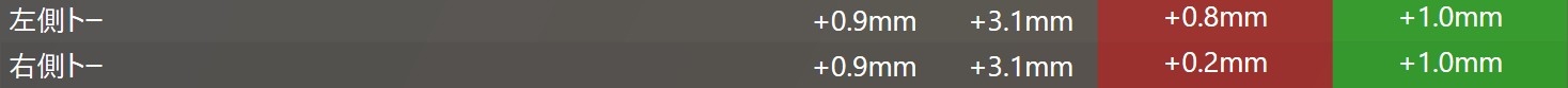 数値のズレとしてはフロント右側のトーがアウト側にズレていました。