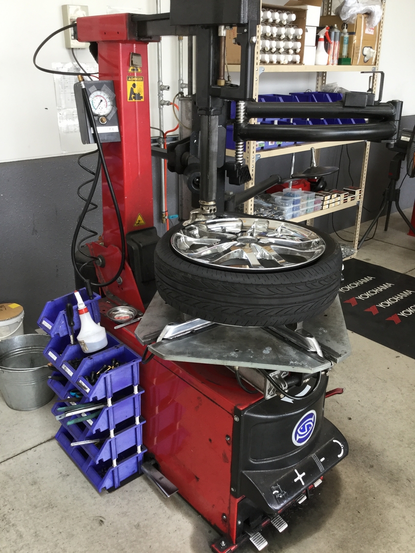 当店のタイヤチェンジャーはサポートアーム装備で大口径サイズや扁平サイズまで